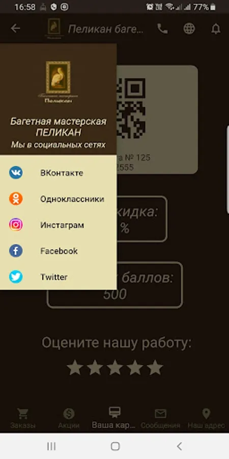 - a discount card on the phone screen, which allows you not to carry a plastic card with you;