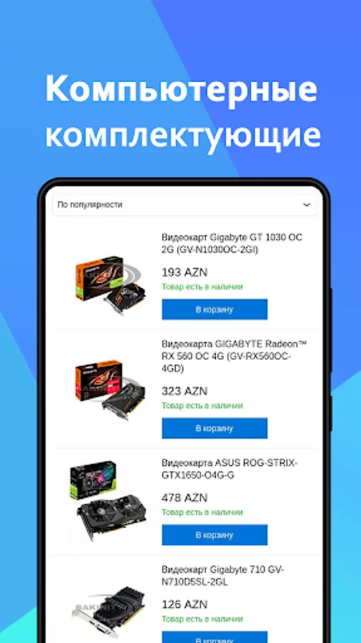 Bakinity company offers various products and equipment of leading companies in a wide assortment - computer equipment, spare parts, laptops, computer and office peripherals, servers, network and operator equipment, as well as licensed software from leading world companies.