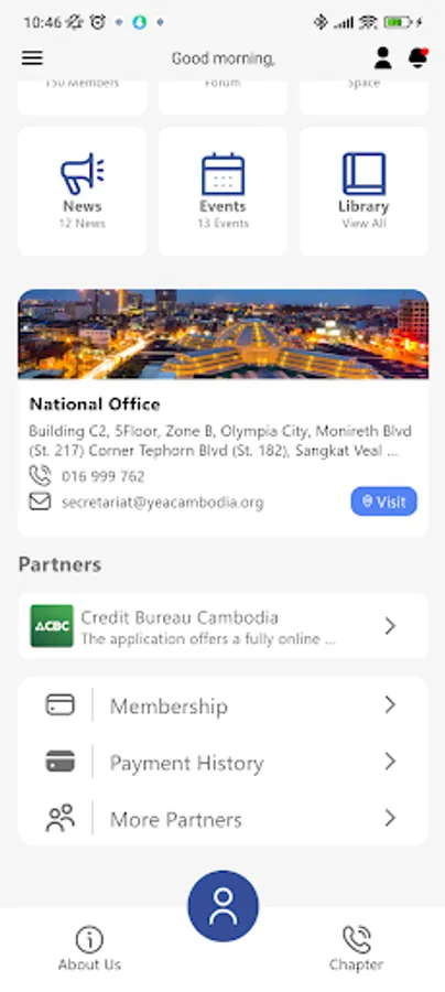 The App has 2 different main purpose, one is for public user who is not registered to be member yet but able to receive the latest news, events, library, and member list. Another one is for membership user who interested to be a part of YEAC, user will explore more features, more privileged than public user.