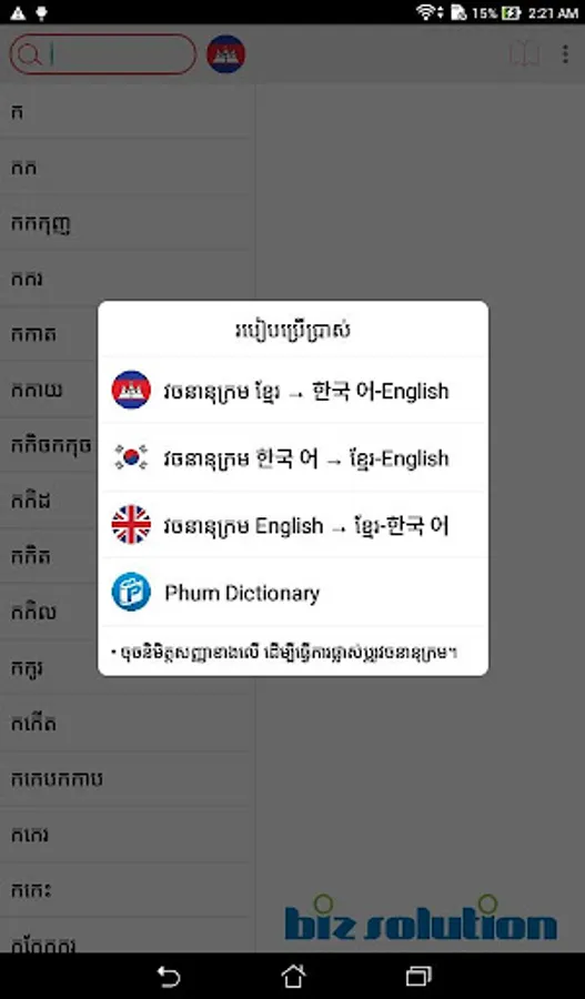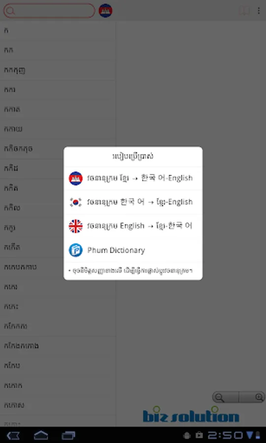 Phum Dictionary for iOS developed by Biz Solution.