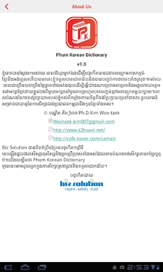Phum Korean Dictionary is digital version of Khmer-Korean-English Dictionary by Ph.D. Kim Woo-Taek.