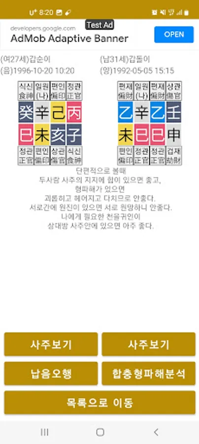 This product is software that analyzes compatibility between two people. Find out the person's tendencies through saju analysis. You can recognize each person's tendency, and you can find out how well they match each other through an analysis of the relationship between the two.