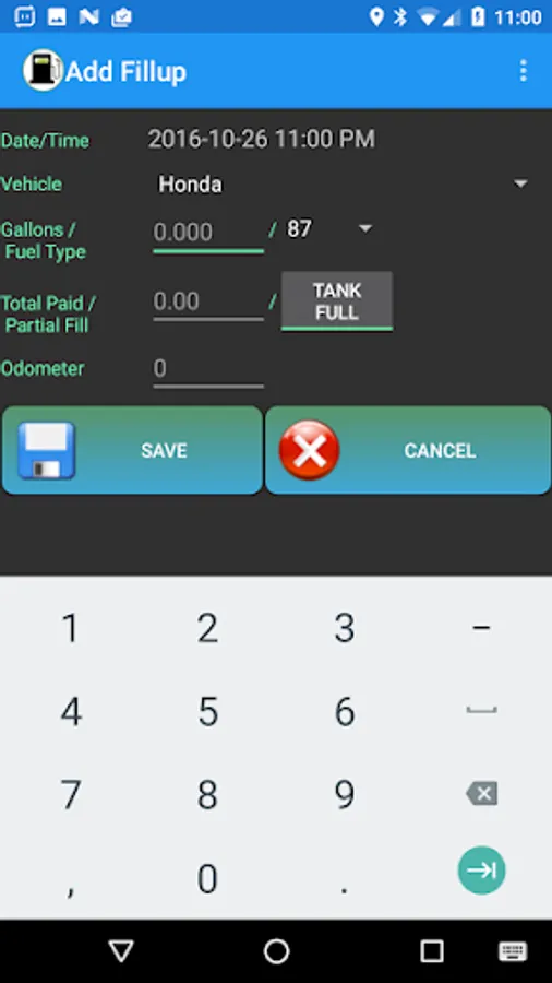 Keywords: car, vehicle, fuel mileage, gas mileage, fill-up, fillup, maintenance, service, expense, trip, mileage, fuel, gas, track, tracker, mpg, cost, statistics, report