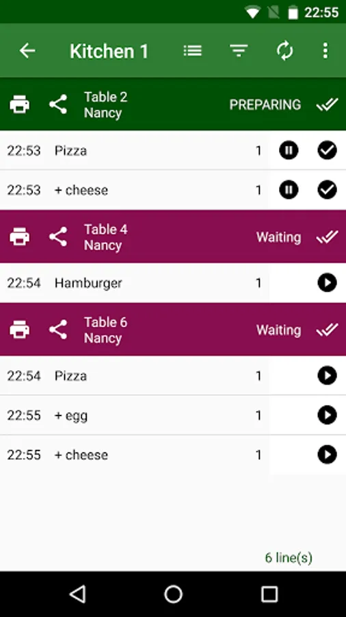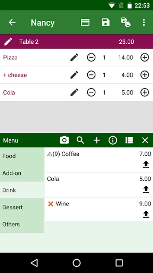 • You can change the table. By dividing the order, you can transfer some of it to another table. You can combine orders from two tables