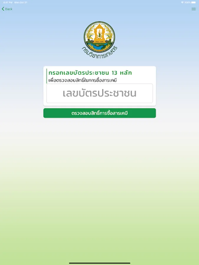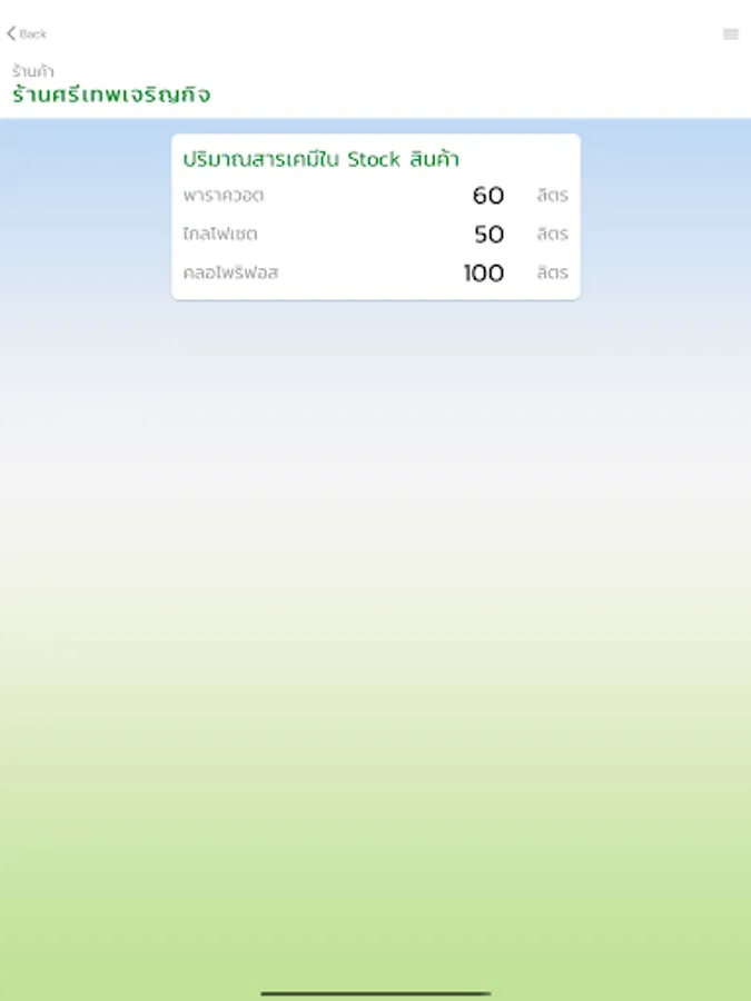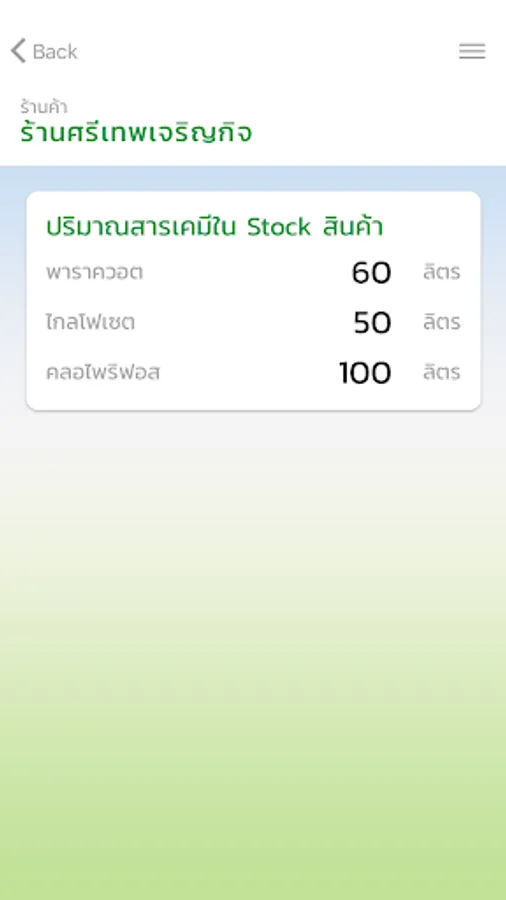 Is an app for the store that can log in to check the amount that can be purchased for 3 types of chemicals, which are chlorpyrifos glyphosate, parachute, that farmers have the right to buy substances. chemical how much And can still be subtracted With the amount already purchased As well as informing the remaining amount of the next purchase as well
