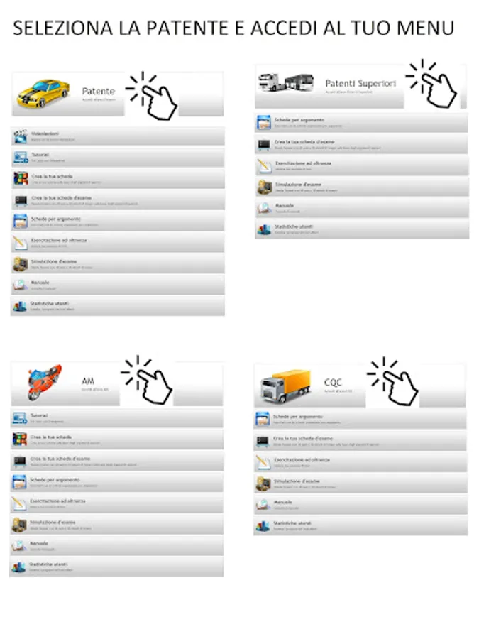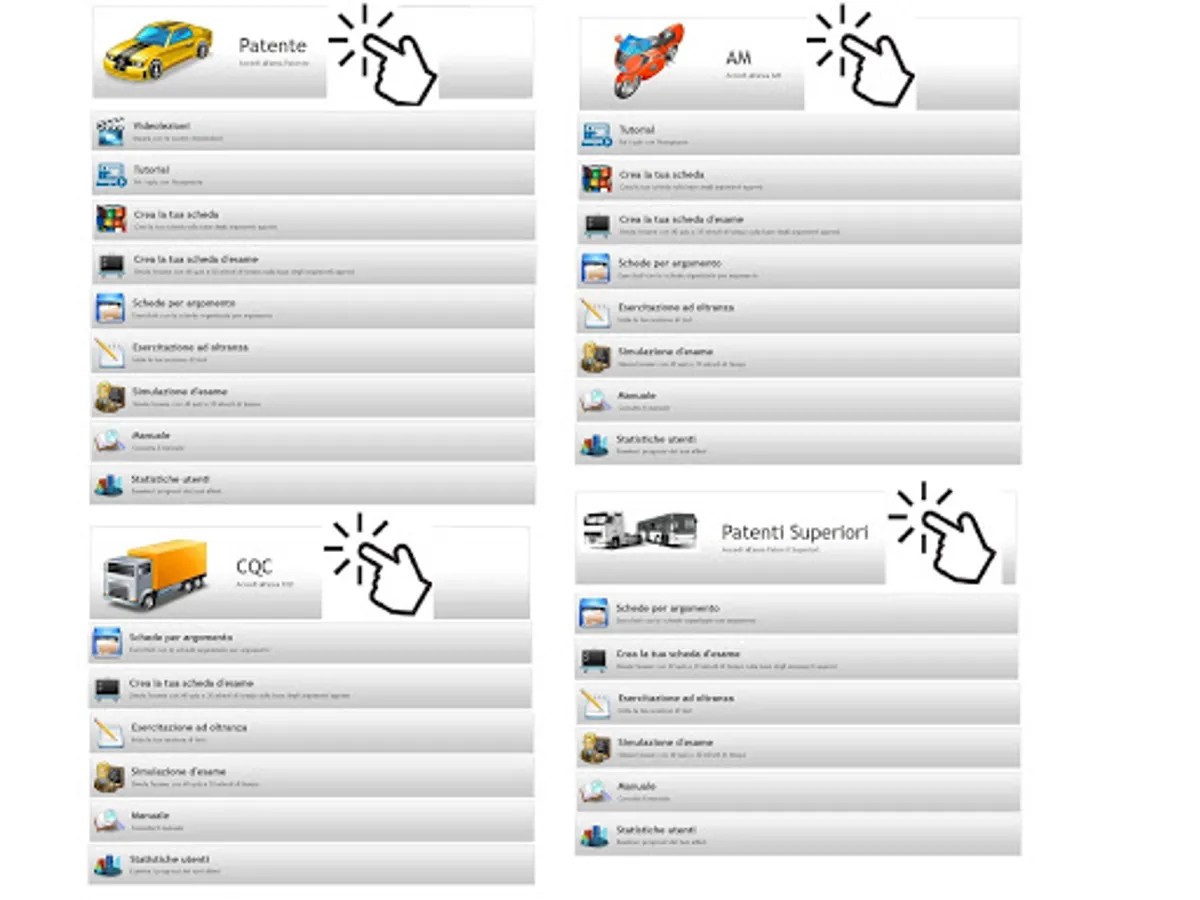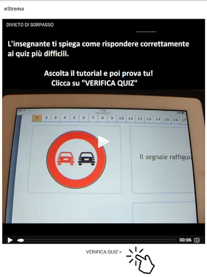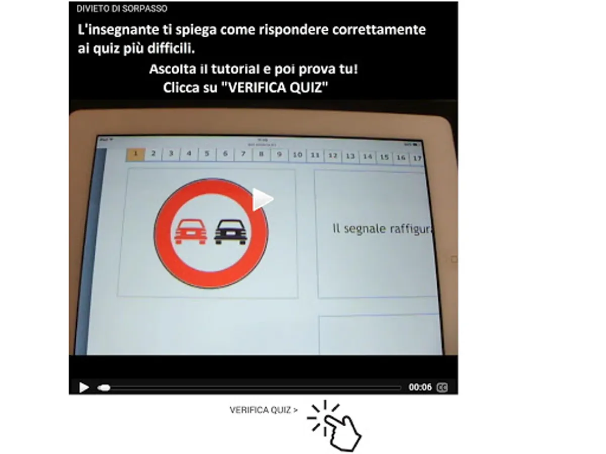 - video lessons: the teacher tells you all the topics of the license. For any explanation, you can immediately check yourself if you understand the topic "checking the quiz ';