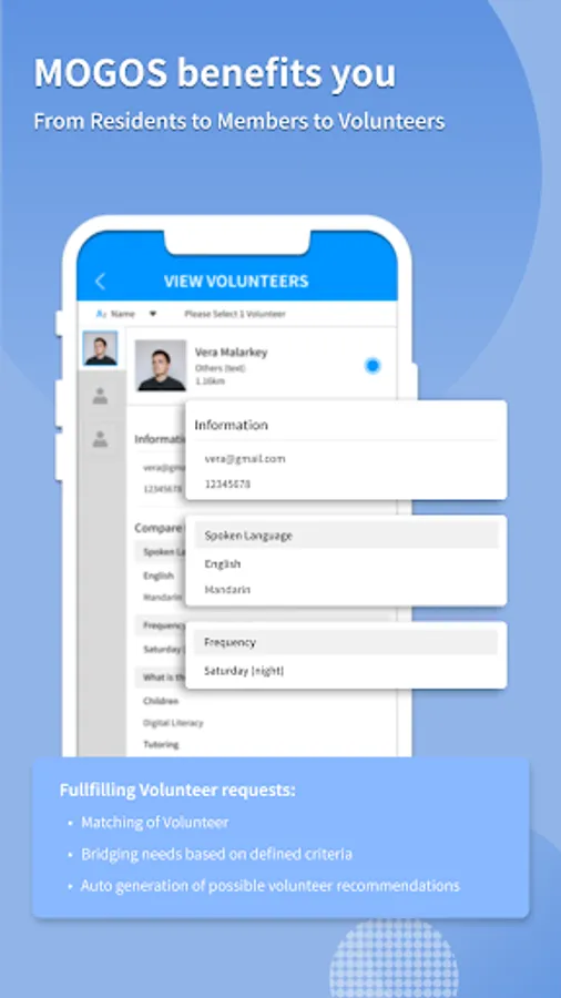 - Eliminates time in matching and co-ordinating work for Volunteer-Beneficiary interests.