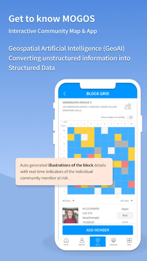 - Show members and community risk indicators on the virtual Block Grid and a map.