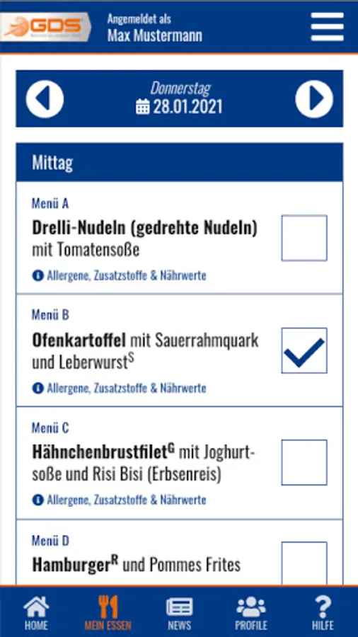 Nutritional information included. In addition, short-term cancellations and changes can be made and invoices can be called up.