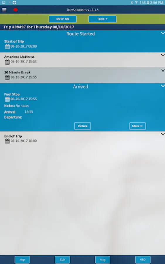 Trux Solutions also has a product that extends the electronic logbook that will allow you to route and track your entire fleet. It provides real-time route times, maps, asset tracking, drop in schedule items, customer billing, and in-app messaging to your operators.