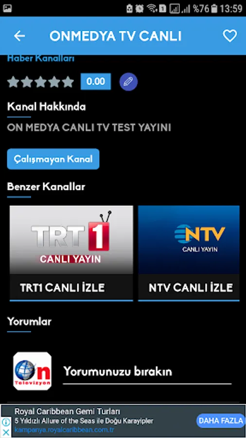 On Television broadcasted in 7 areas with the slogan of your channel. On Television is hosted by On Medya.