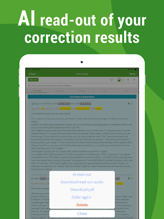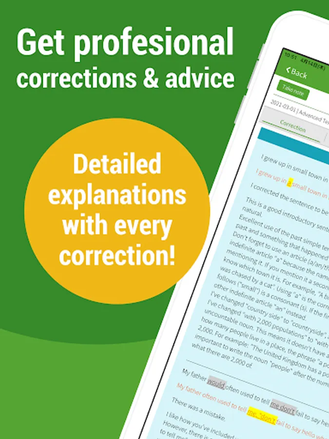 ・Your writing will be corrected with detailed explanations for why every correction was made. Turn your own writing into your very own study guide.