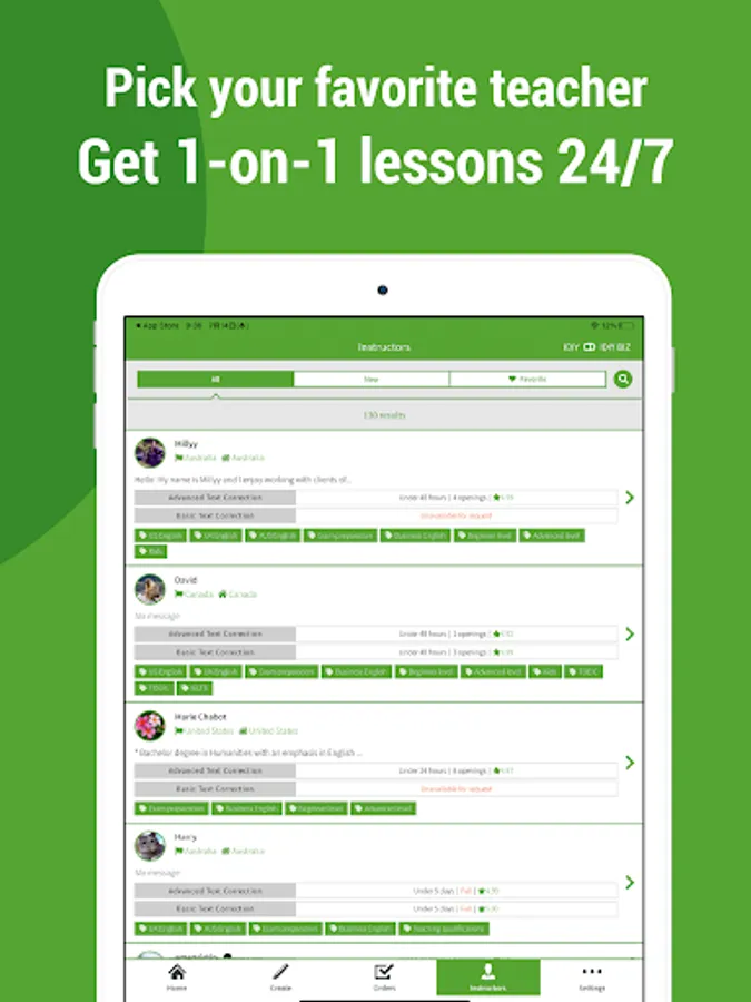・Our team of professional tutors are our greatest strength. Search from over 150 native English tutors, each with their own unique strengths!