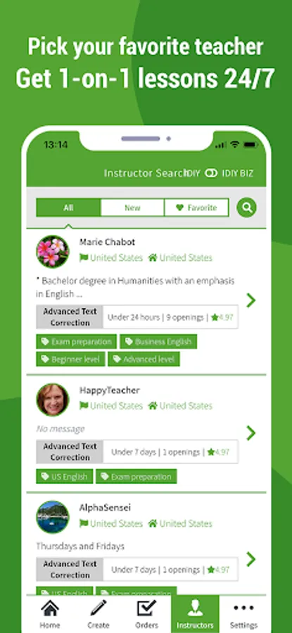 Get English writing lessons with advice from real professionals on the IDIY app. You can also message your tutors for a fun learning experience!