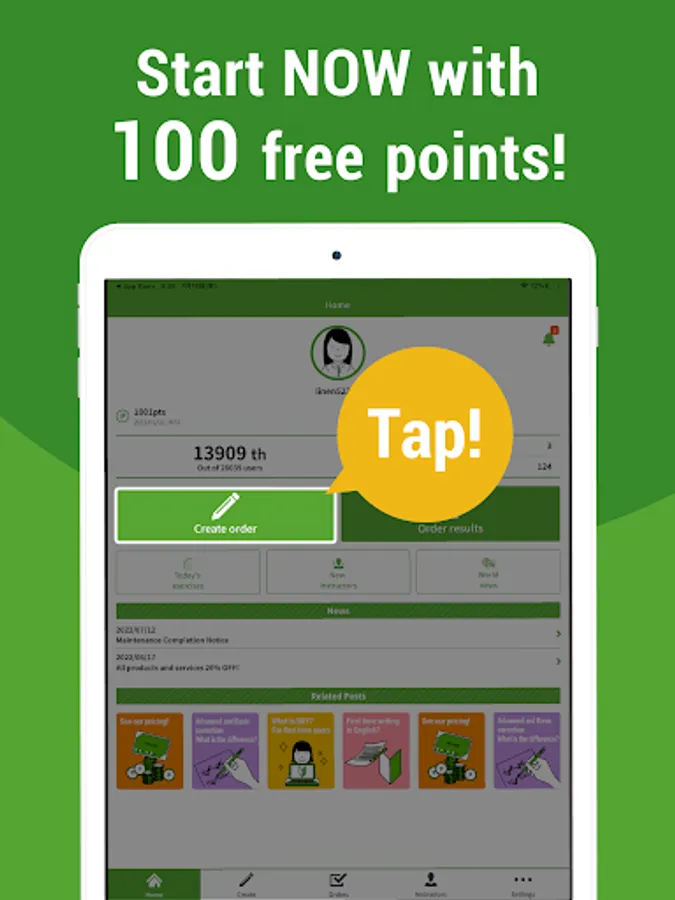 ・Get 100 points (up to 2 corrections) when you complete the free member registration.