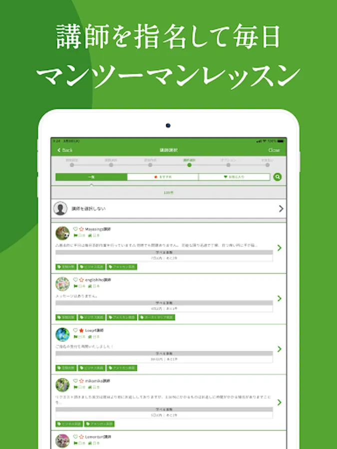 ・ The biggest feature of ID is the fulfilling instructors. Find and nominate an instructor from over 400 instructors based on conditions such as "native," "bilingual," "good at preparing for entrance exams," and "holding a teacher's license."