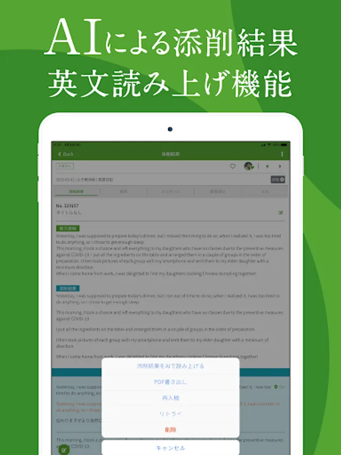 ・ Challenge English composition with the points you got for free. You can also upload your own English composition, and it's fun to challenge over 3000 English composition tasks.