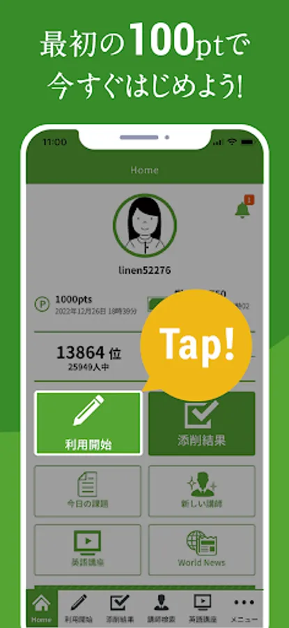 * Free registration now gives you 100pt (equivalent to 1200 yen) correction experience points *
