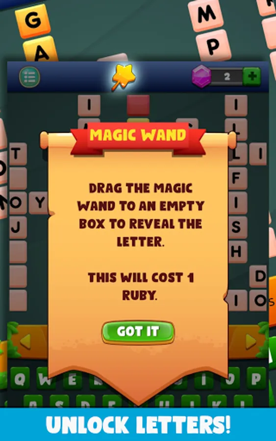 Playing Crossword Challenge is similar to classic crosswords, but with a modern twist! As you progress through each puzzle, you will unlock letters throughout the puzzle grid. There is also an option for when you're stuck - the Magic Wand! Simply touching the Magic Wand , then dragging & placing it on the grid will reveal the letter to you.
