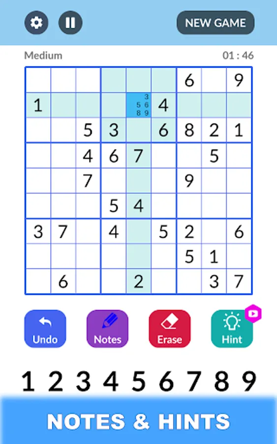 Play classic Sudoku puzzles on your Android device for free. Suitable for players of all abilities, choose your difficulty level, ranging from "Easy" to "Expert". A great way to keep the mind active while having some time to focus and relax.