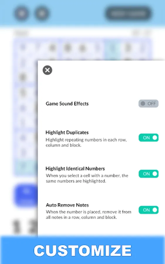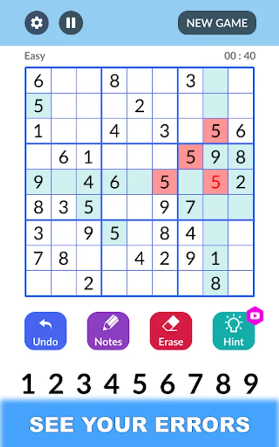 • You can figure out your errors on your own, or use the "Highlight Duplicates" option, so you'll see any errors show up automatically as you play.