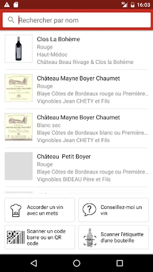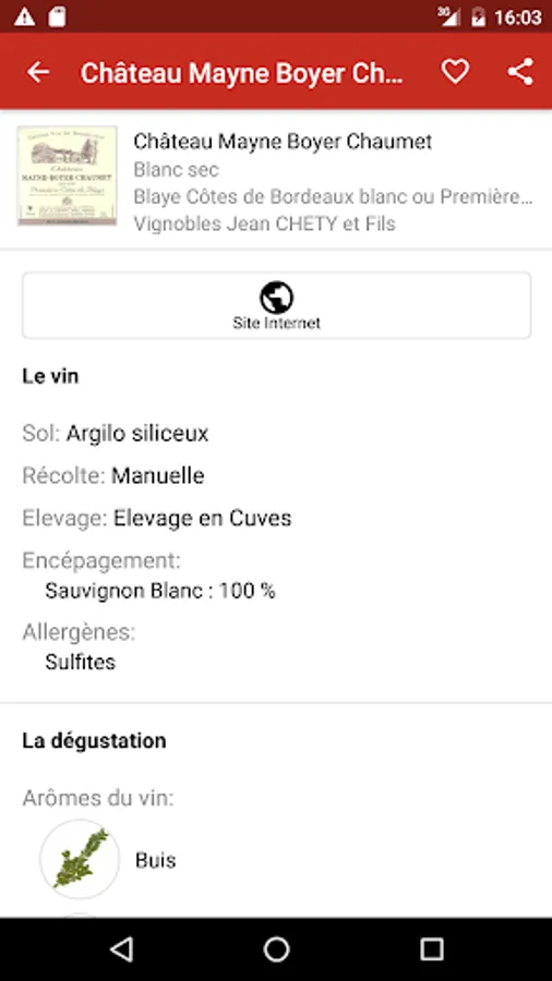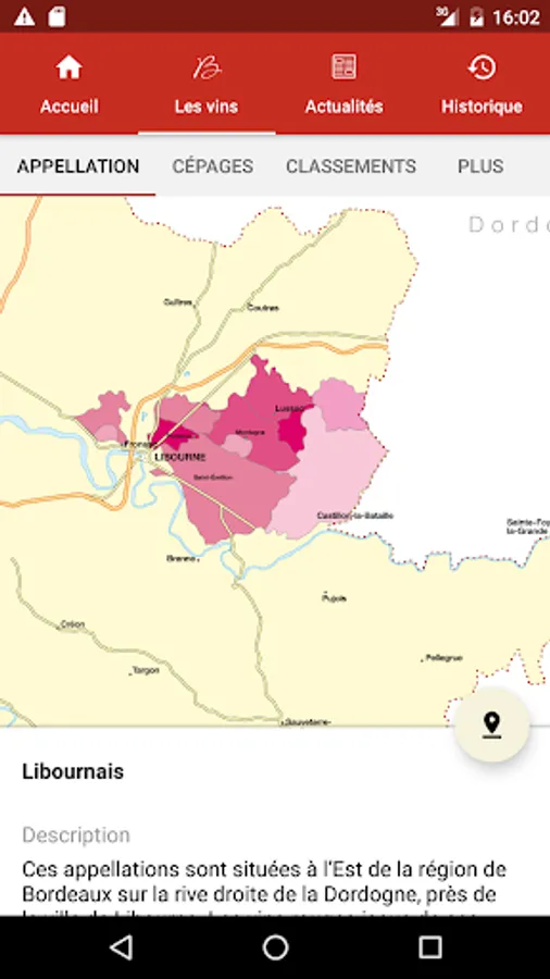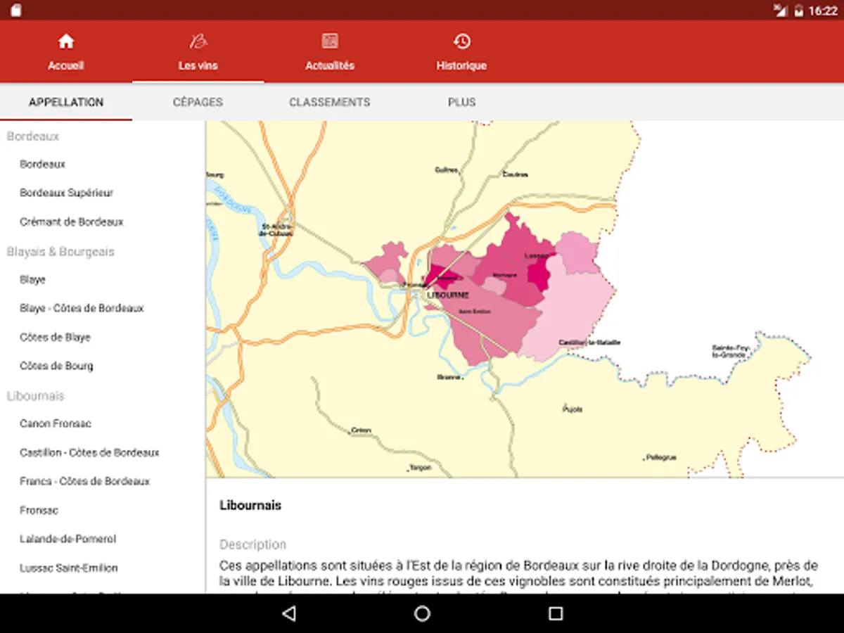 - access to Bordeaux wines' informations: AOC, grape varieties, standings