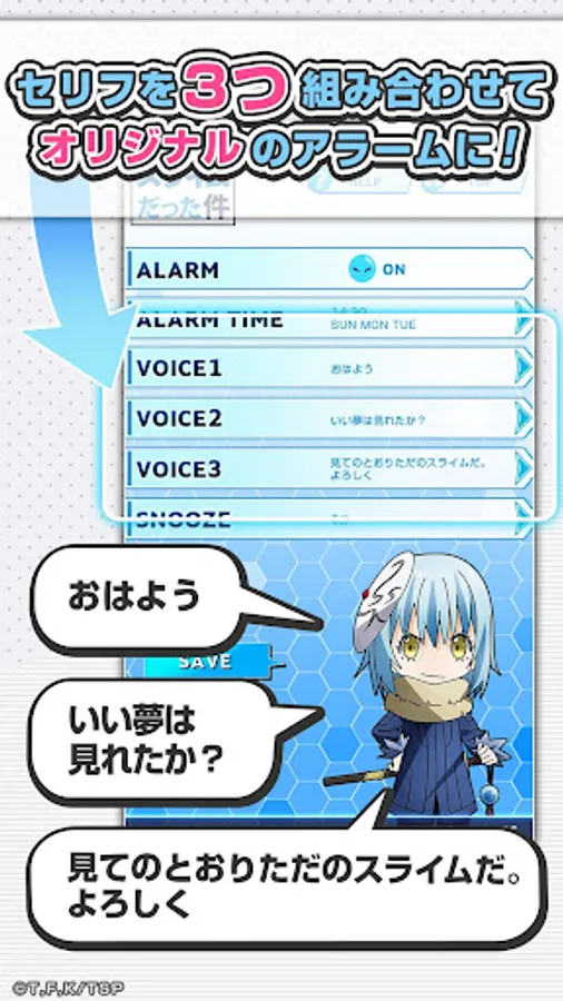 "Rimuru & Sage Alarm" can set up to 3 voices from the voices prepared for the alarm.