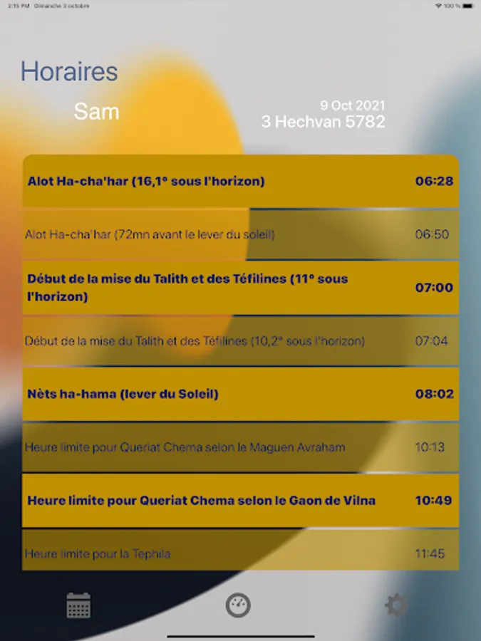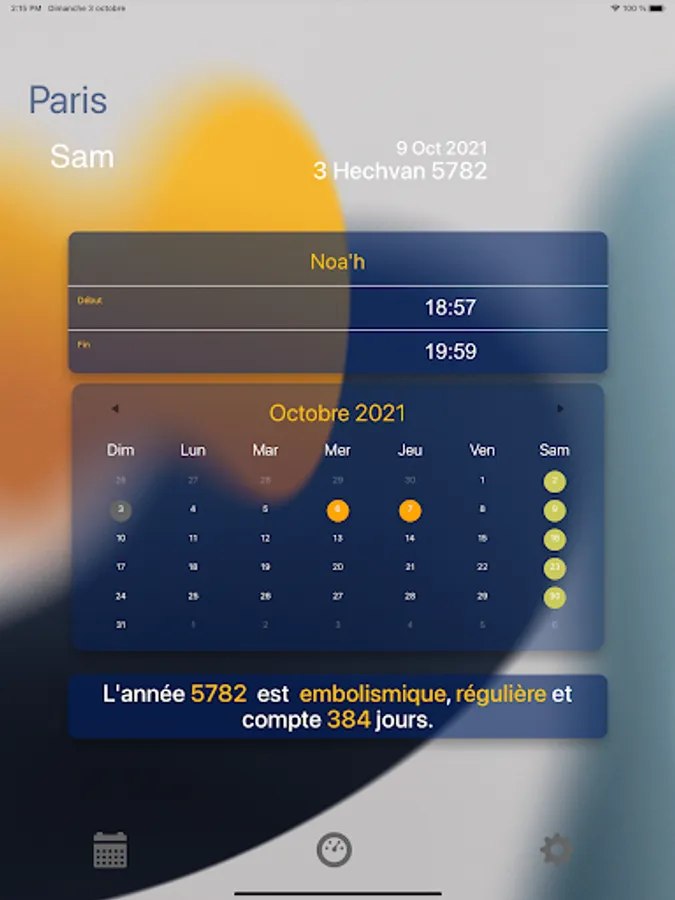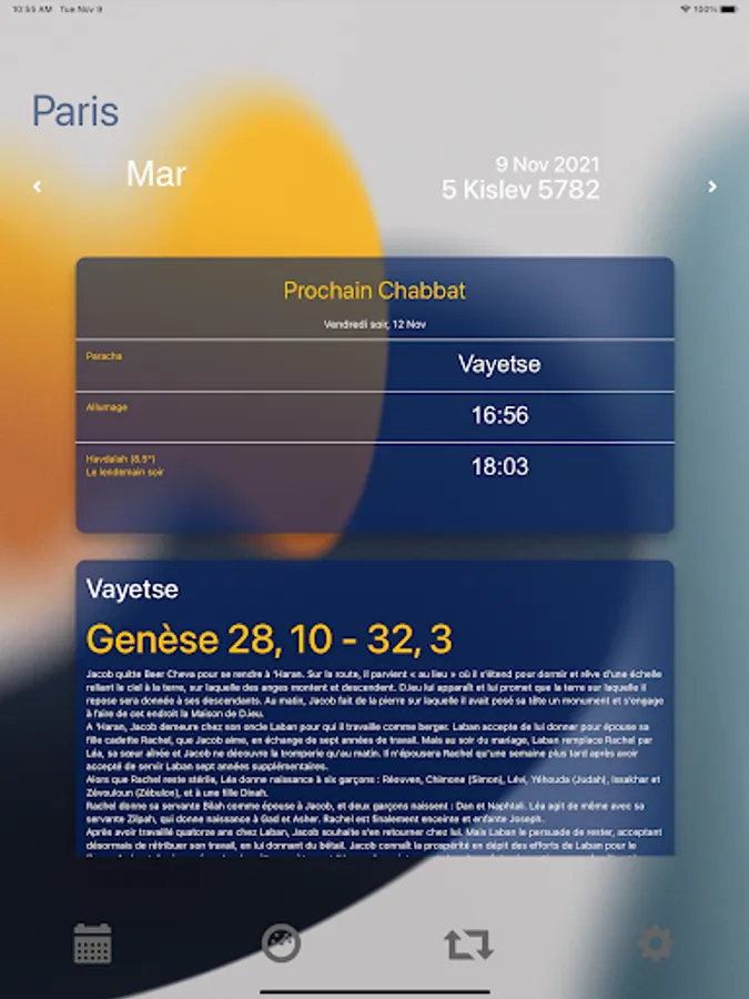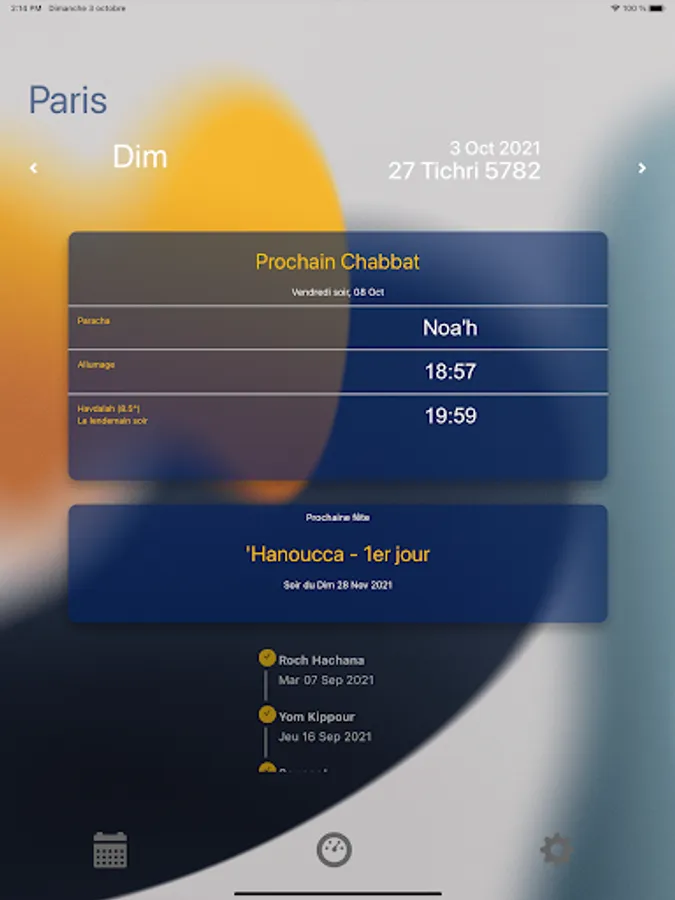 Hebraic allows you to get the Shabbat times and the summary of the parsha, the dates of the feast days. It is possible to choose any city for which this information will be calculated. In addition, Hebraic will give the schedules to be taken into account for the daily services and the setting of tefillin. Hebraic will also indicate the dates of the main Jewish holidays for the next two years.