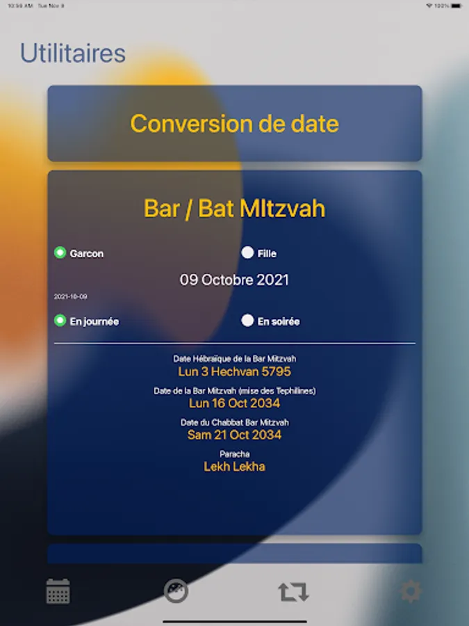 Hebraic converts secular dates to Hebrew dates. the app also calculates Bar and Bat Mitzvah dates.