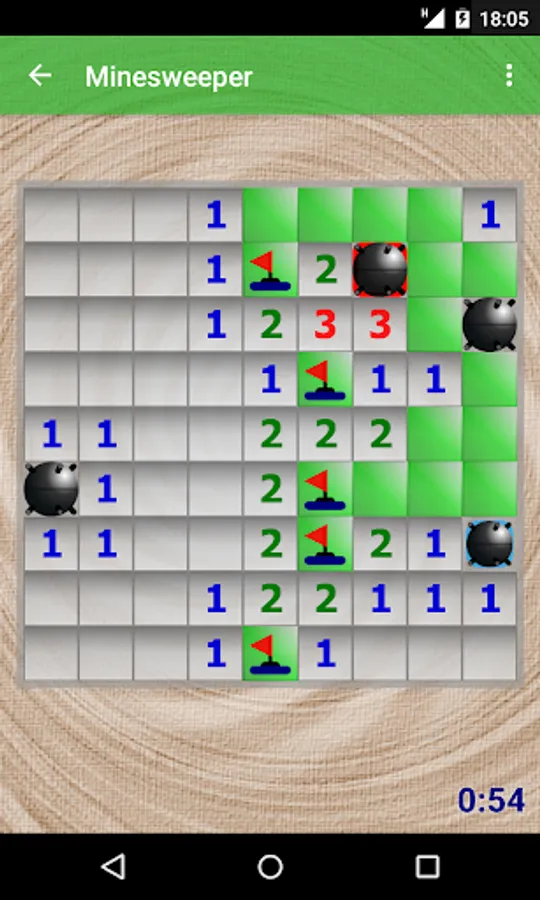 It is necessary to determine the location of ten mines. Click on a cell trying not to open the mined box. If there is no mine under the open cell the number appears in it indicating how many adjacent cells "mined". Using these numbers it is necessary to calculate the location of the mines, however sometimes some cells still have to open at random.