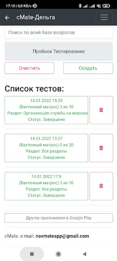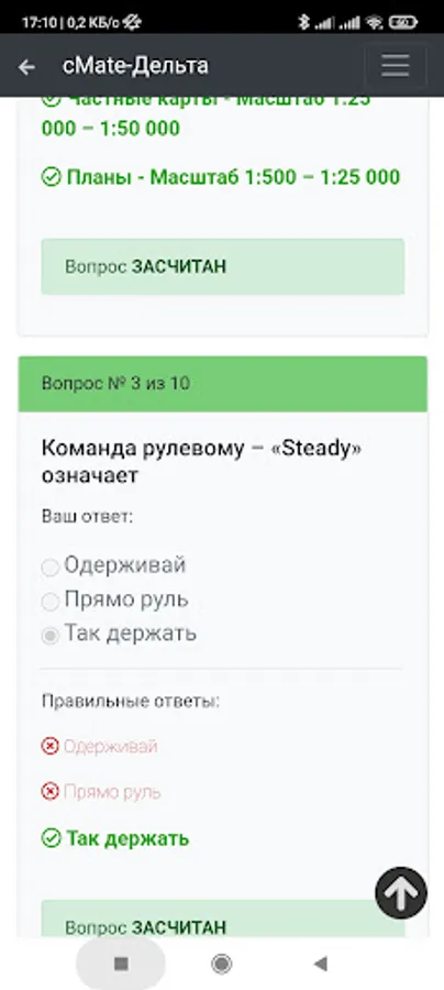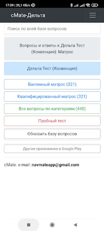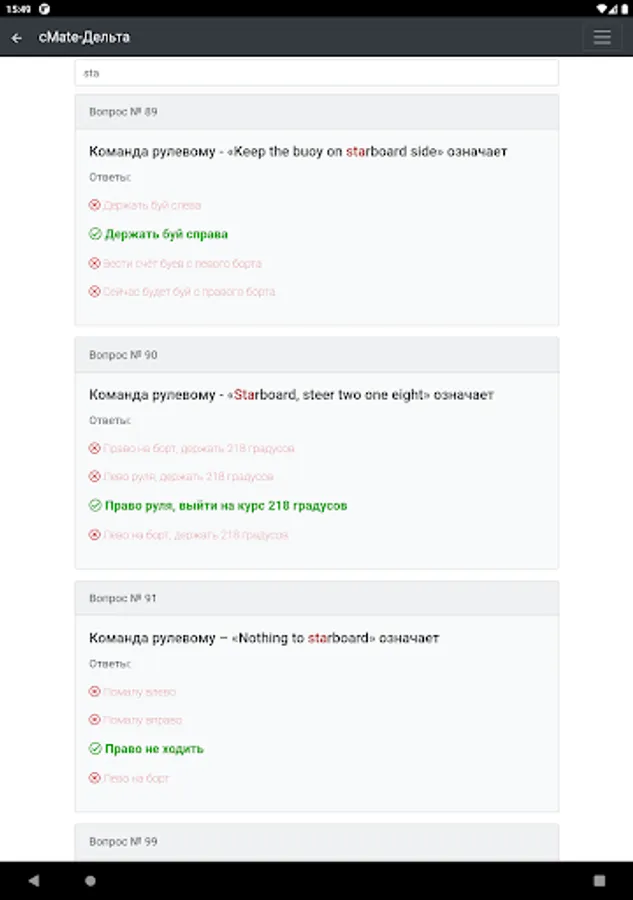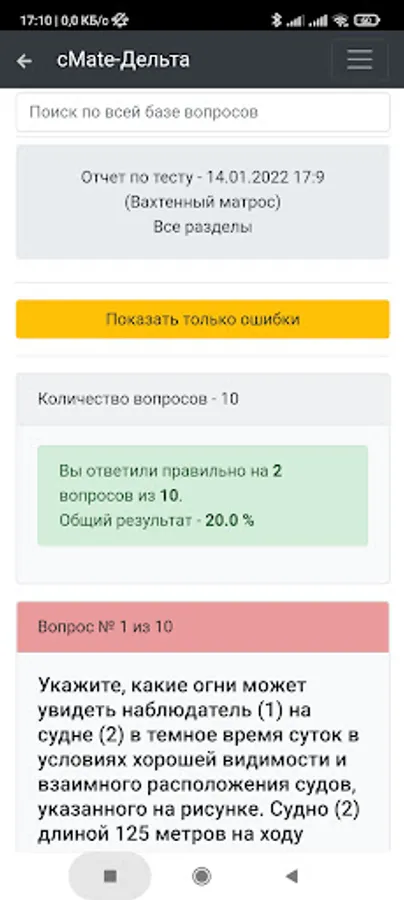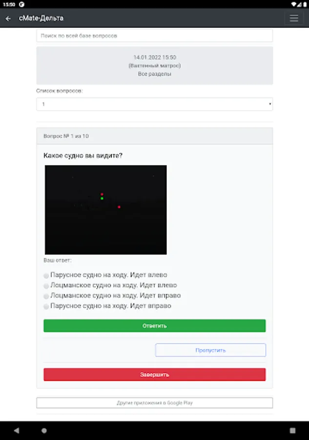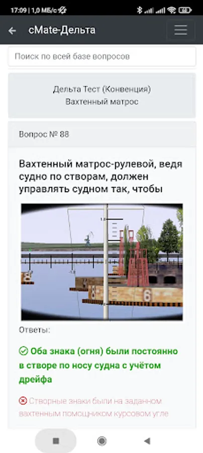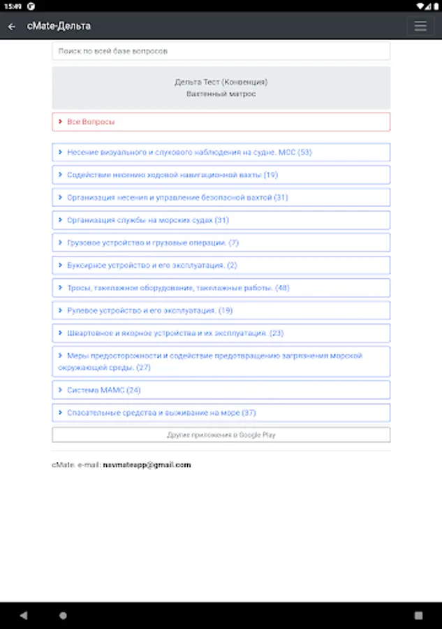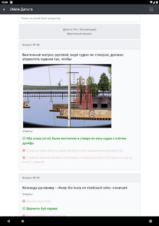 The application contains a database of questions and answers for passing the exam for the qualification certificate of a sailor on watch and a Qualified sailor with the ability to pass a training test that you can set up yourself.