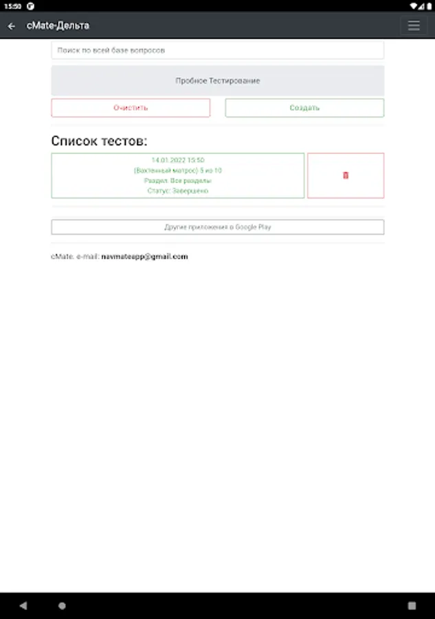 2. On older devices, the first launch of the application may take some time 15-30 seconds due to the creation of a large database of questions. Do not close the application until it is fully loaded.