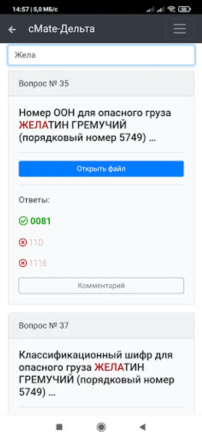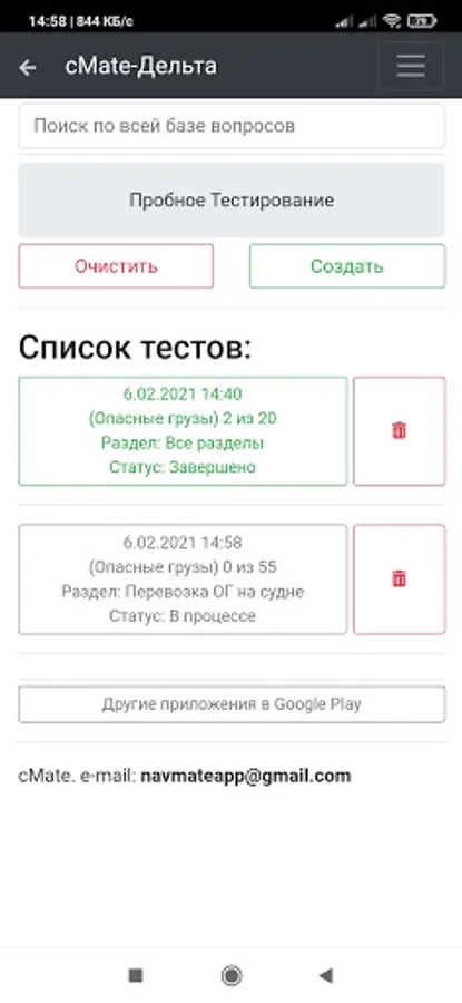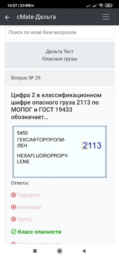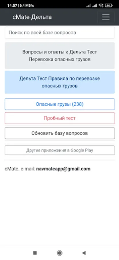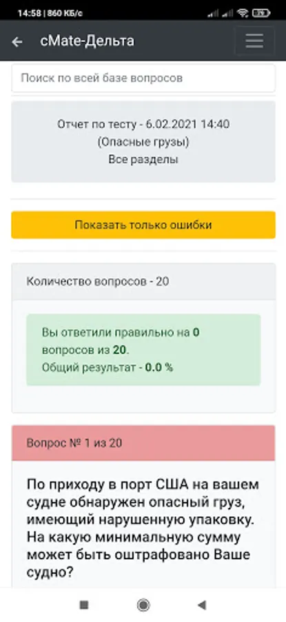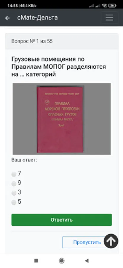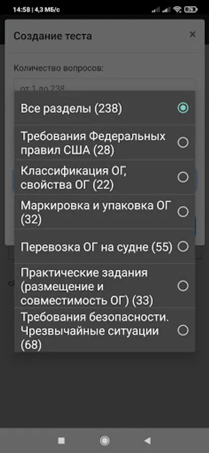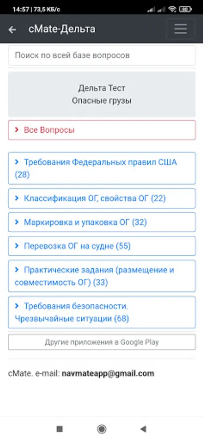 The application database contains 238 questions to test the knowledge of officers and ratings in accordance with international and national requirements of the Russian Federation and the United States.