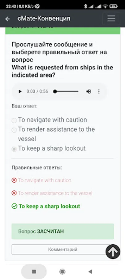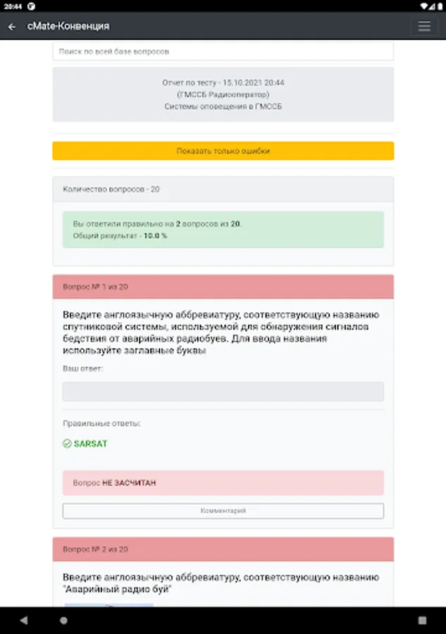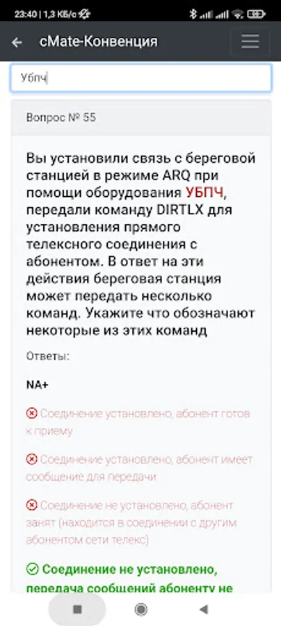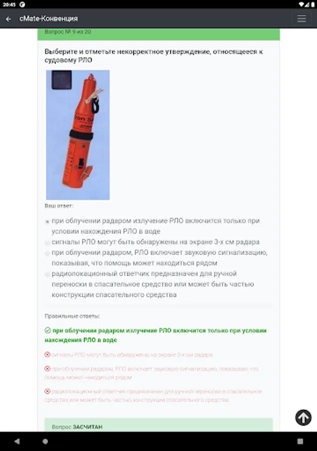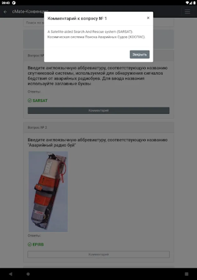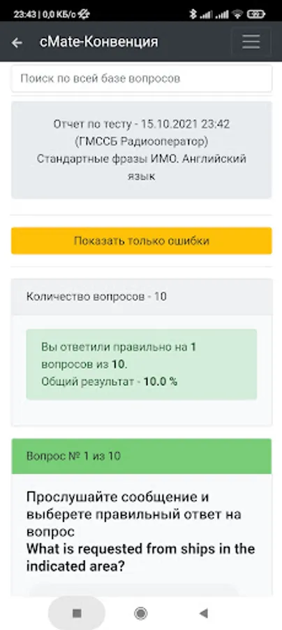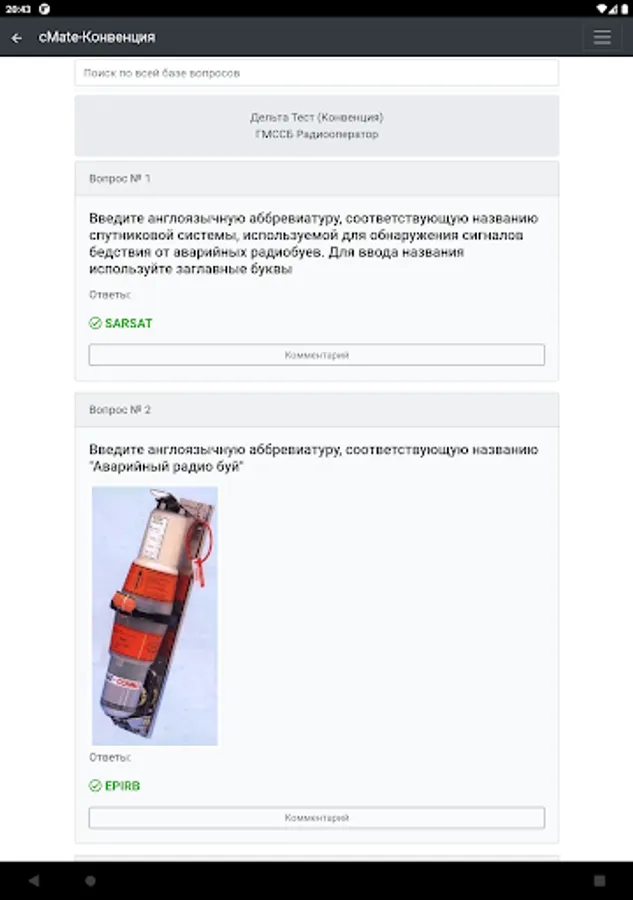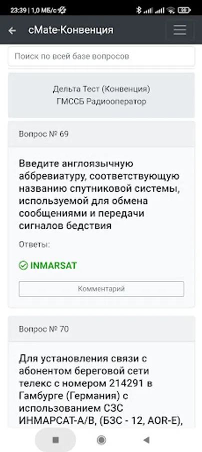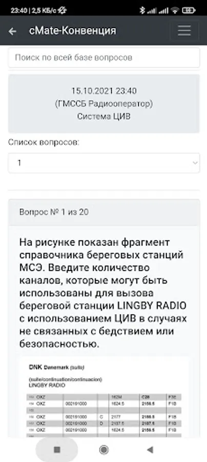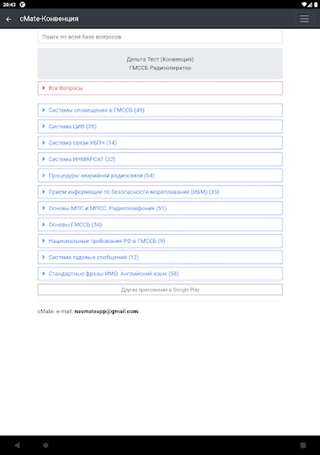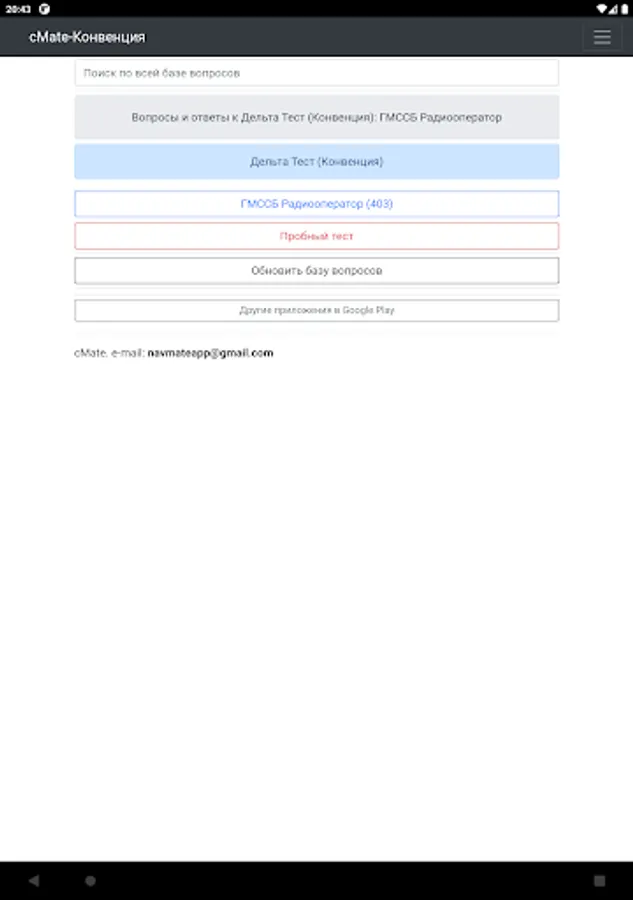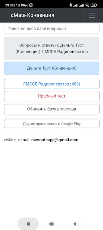 The application contains a database of questions and answers to the new Convention plus test (delta test) for obtaining diplomas: