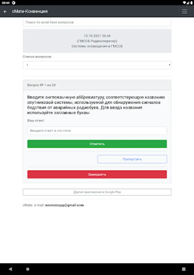 2. On older devices, the first launch of the application may take some time 15-30 seconds due to the creation of a large database of questions. Do not close the application until it is fully loaded.