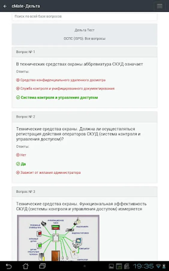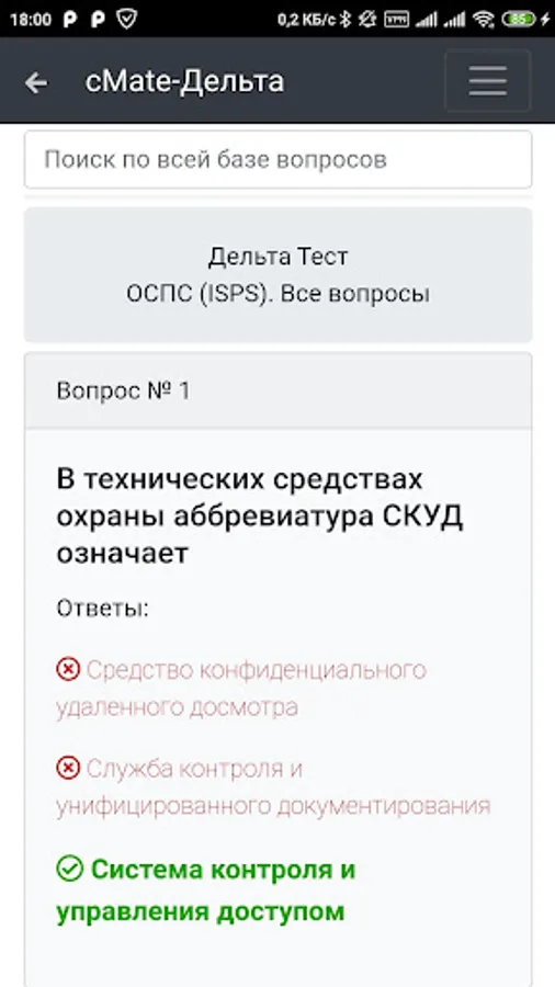 The application contains a database of questions and answers that will help you prepare for the delta test in the following specialties: