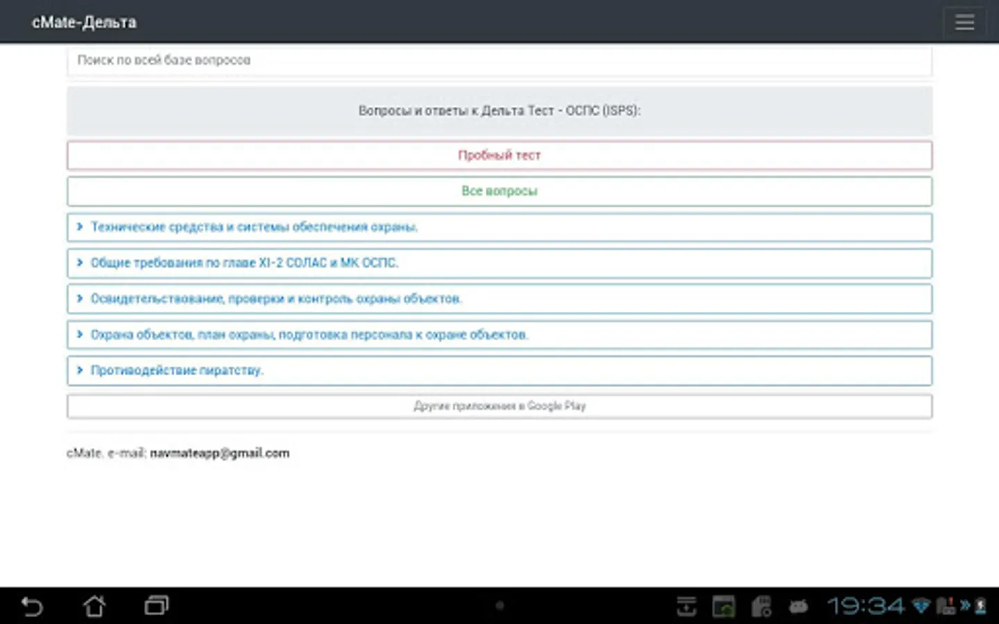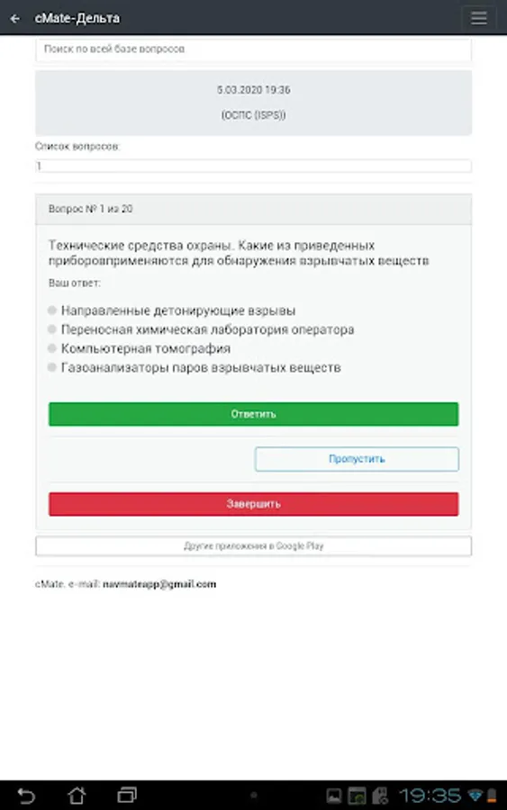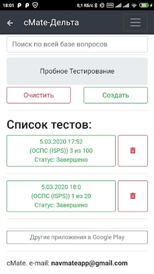 2. On older devices, the first launch of the application may take some time 15-30 seconds due to the creation of a large database of questions. Do not close the application until it is fully loaded.