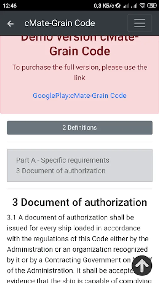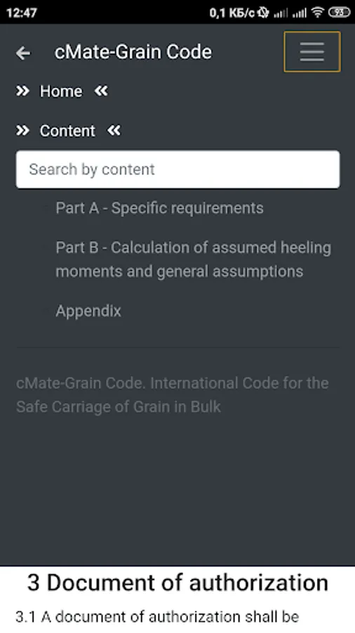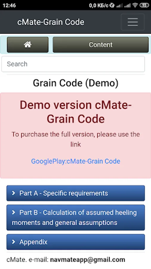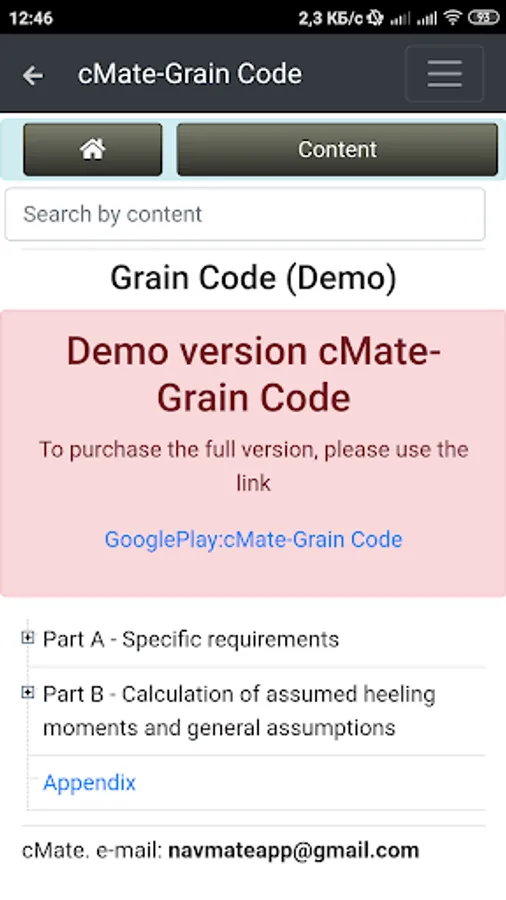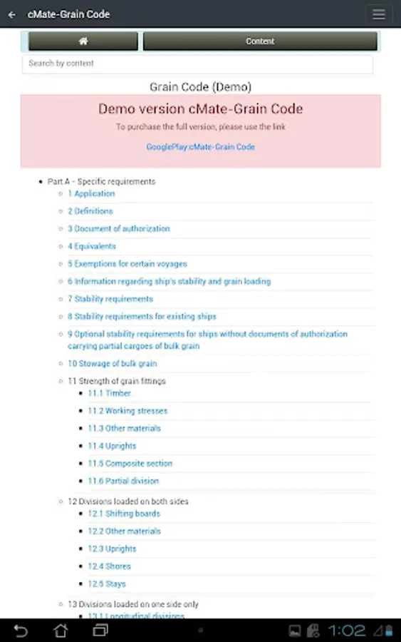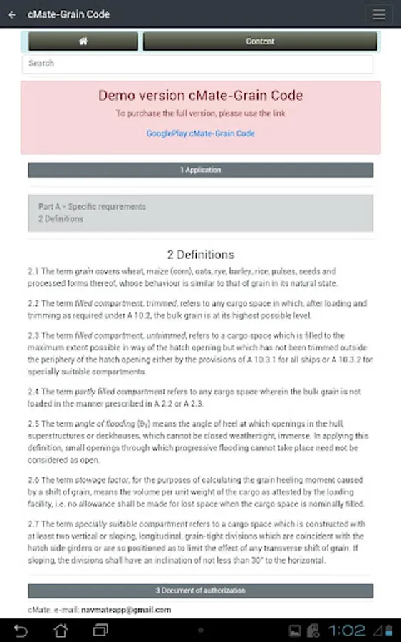Demo version cMate-Grain Code. International Code for the Safe Carriage of Grain in Bulk
