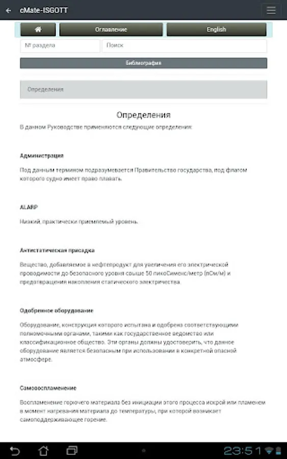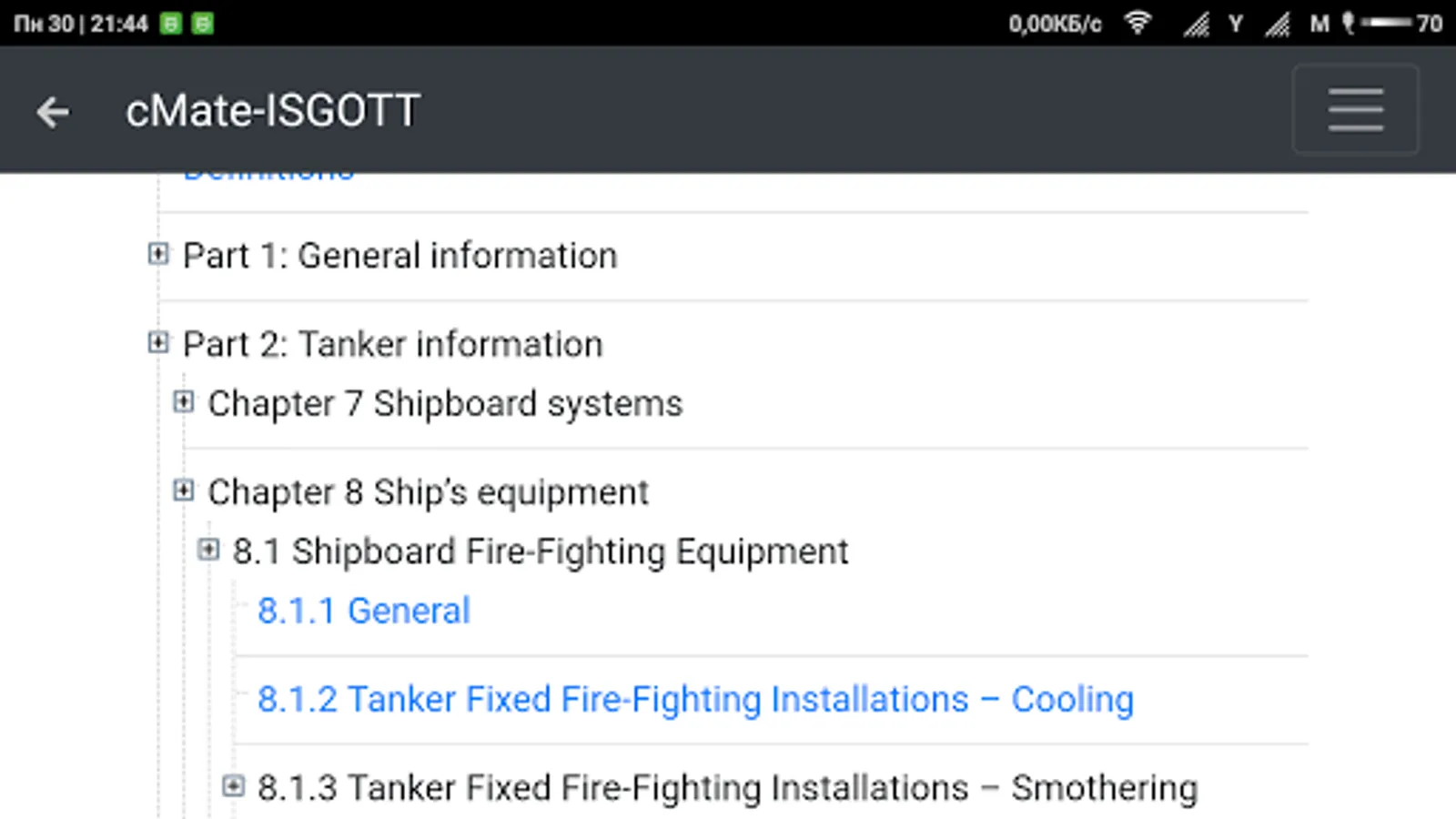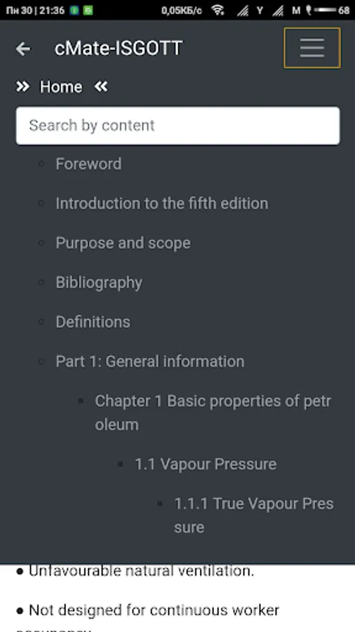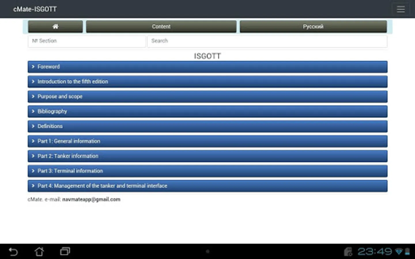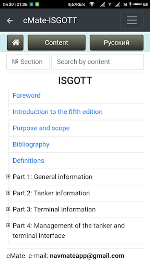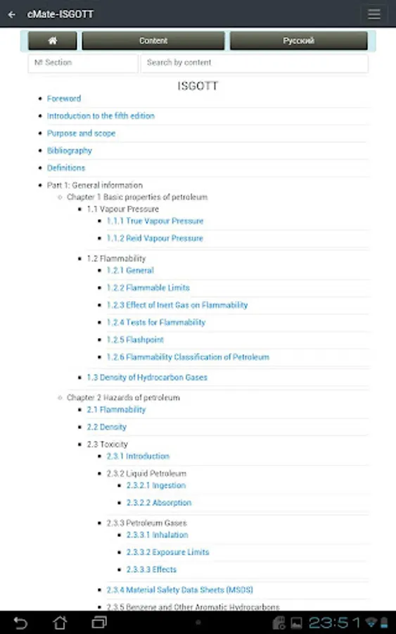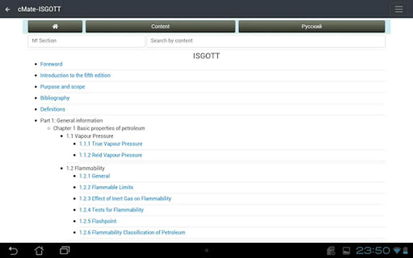 cMate-ISGOTT contains the full text of the manual in two languages (Russian, English), and is equipped with convenient navigation, search by content and table of contents.
