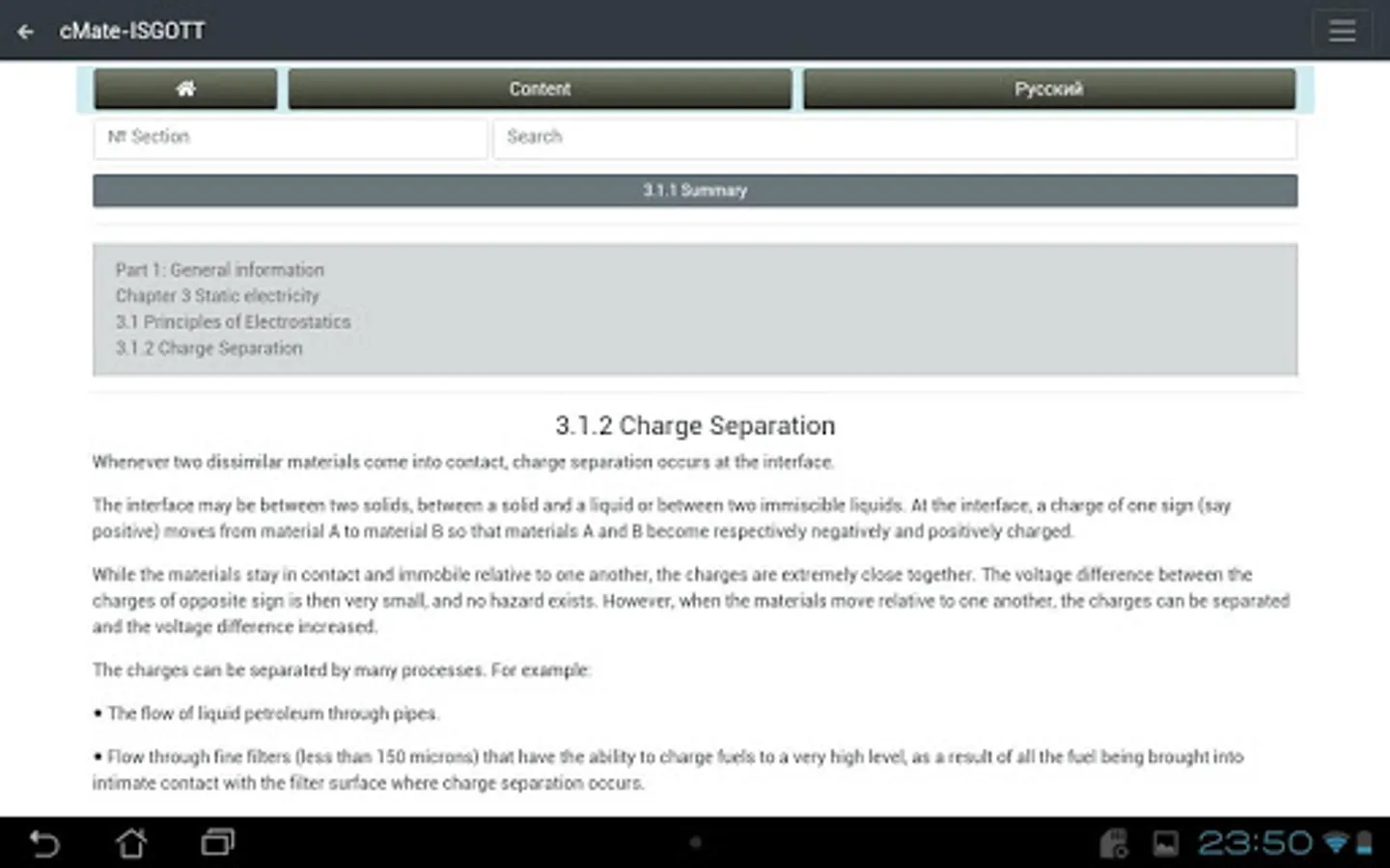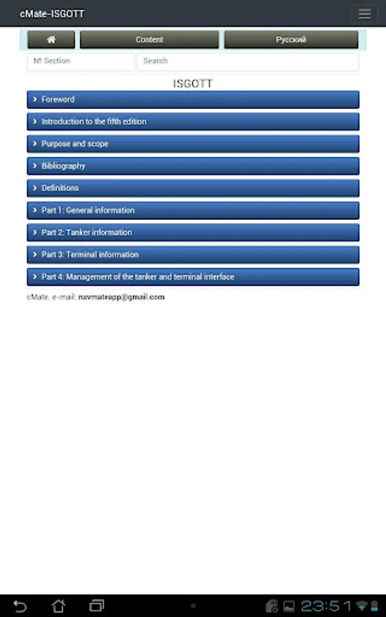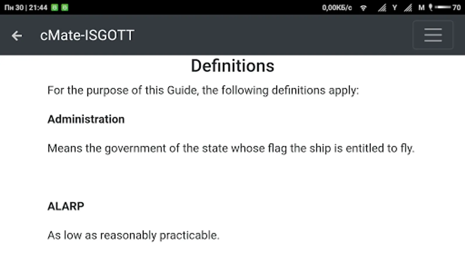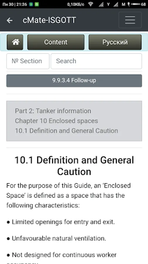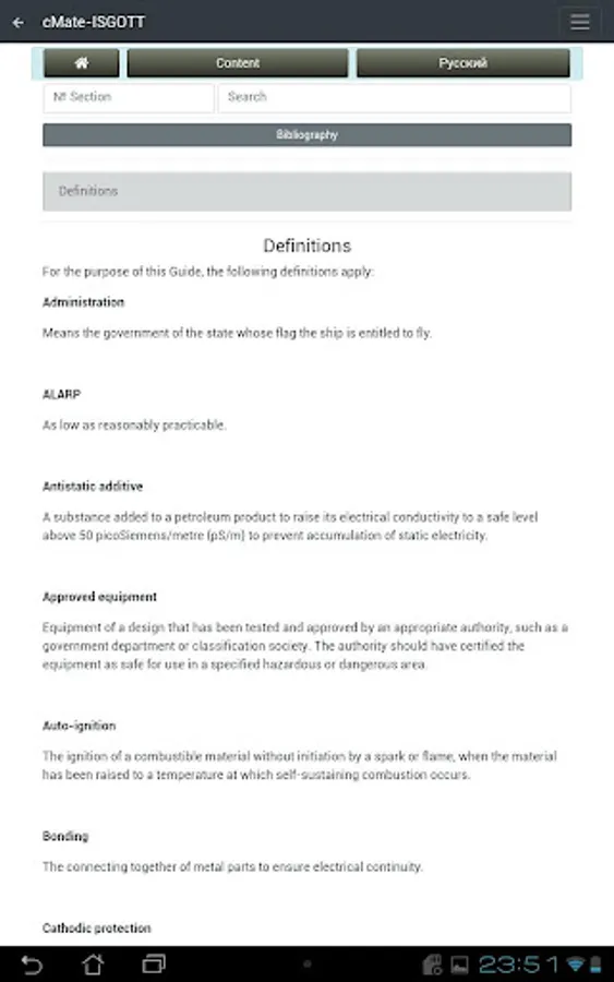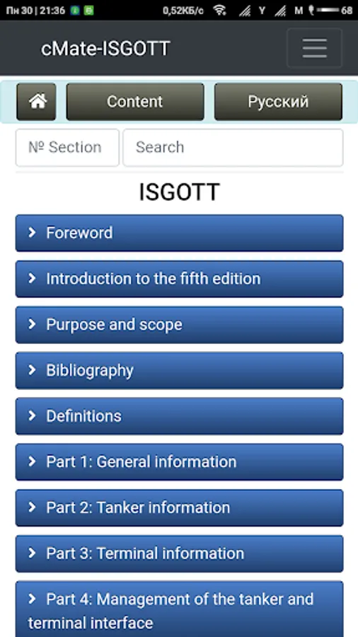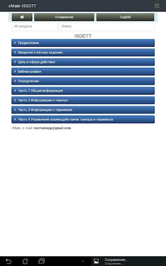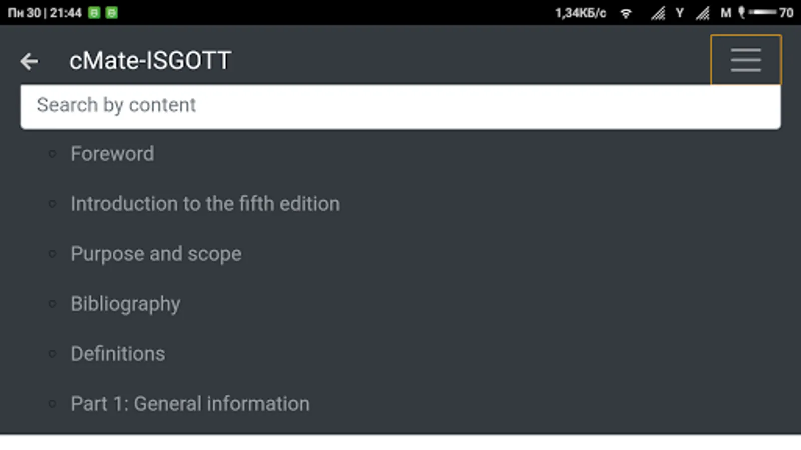 cMate-ISGOTT contains the full text of the manual in two languages (Russian, English), and is equipped with convenient navigation, search by content and table of contents.