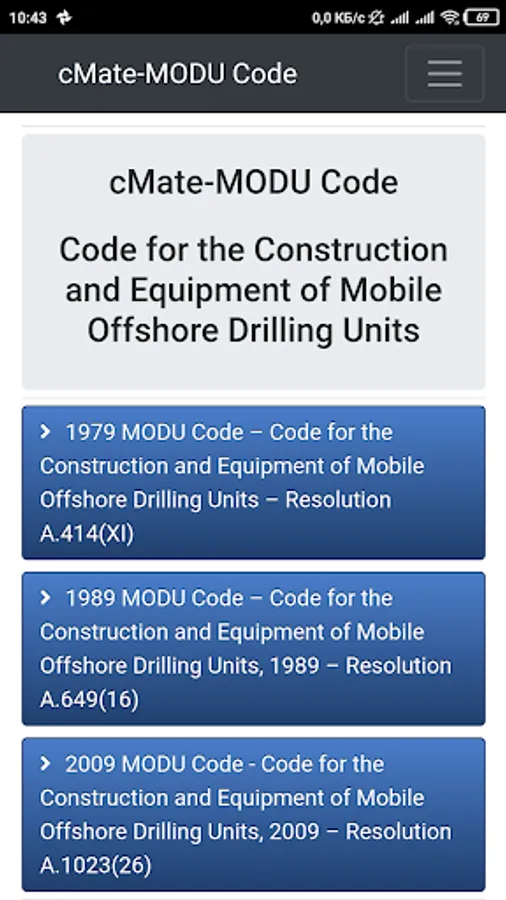 cMate-MODU Code. Code for the Construction and Equipment of Mobile Offshore Drilling Units