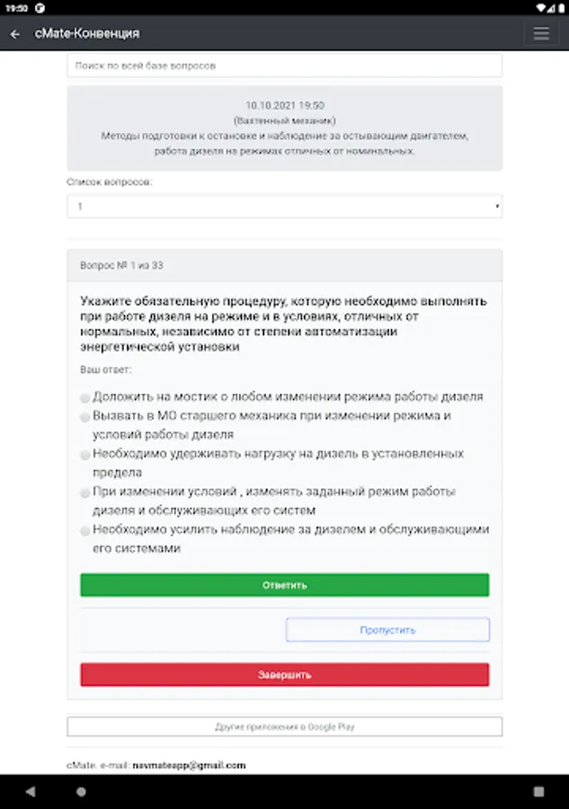 2. On older devices, the first launch of the application may take some time 15-30 seconds due to the creation of a large database of questions. Do not close the application until it is fully loaded.
