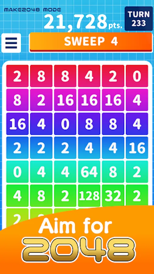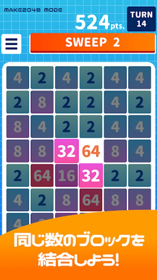 Let's aim for "2048" by connecting the number blocks spread over 6 x 8 squares!