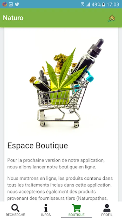 Naturo is also the opportunity to discuss with naturopathic specialists to make appointments, to order products that you can not find nearby and also to have information on points of sale that can provide you.