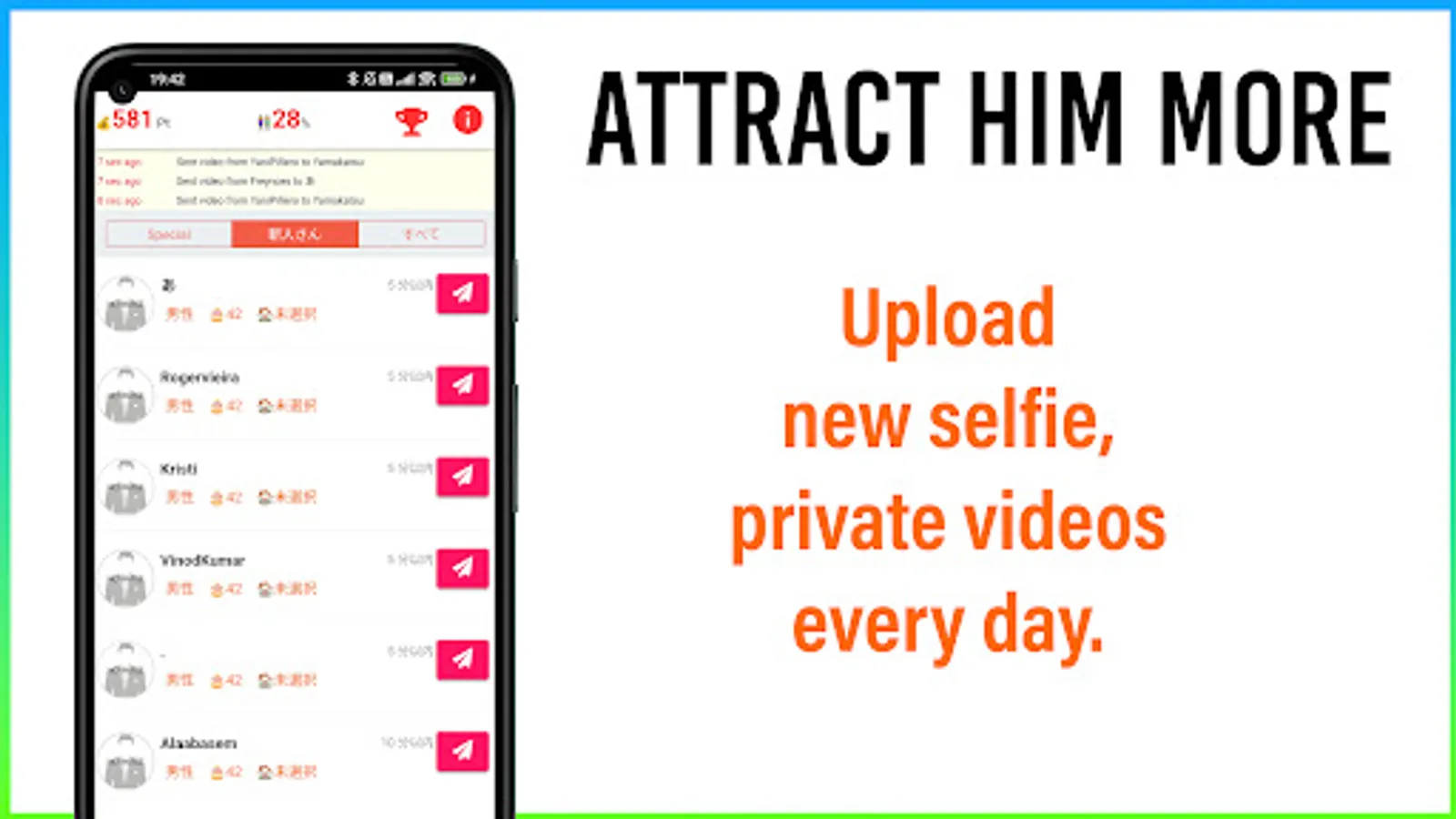 This service is operated in accordance with the GooglePlay policy, so if you are determined to be a violation, you may not be able to use it. In addition, please refrain from requesting to meet directly because it is not a dating service. In addition, the use of those under the age of 18 is prohibited.