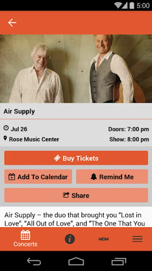 • Buy tickets, add concerts to your calendar, and set concert reminders!