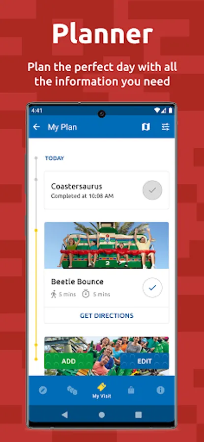 View the wait times for our rides in the app and use the wayfinding feature to navigate your way around the park! Set reminders for your favorite shows and use our Planner tool to get all the information you need for your visit before you've even arrived. Add your favorite rides and checking them off as you go.