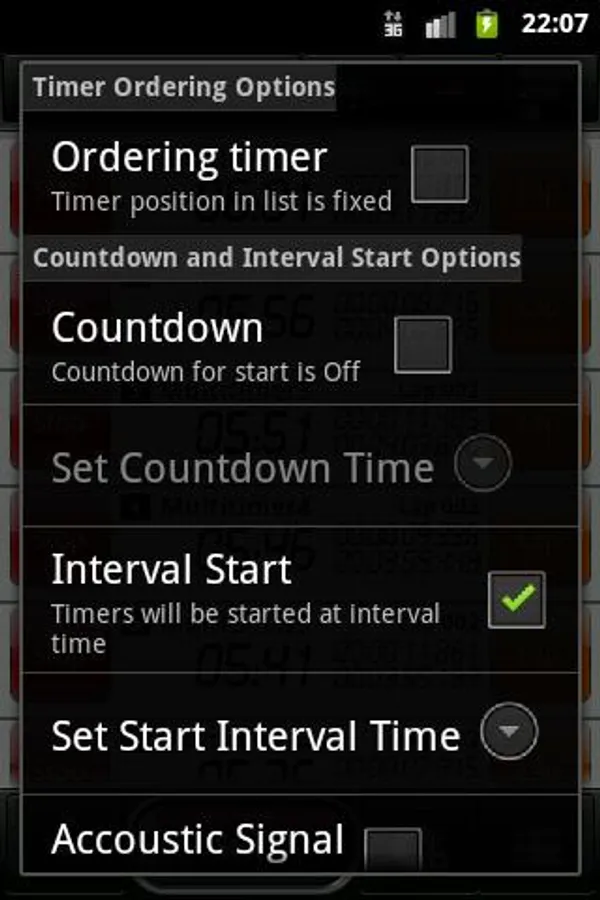 - Optional countdown before total / interval Start