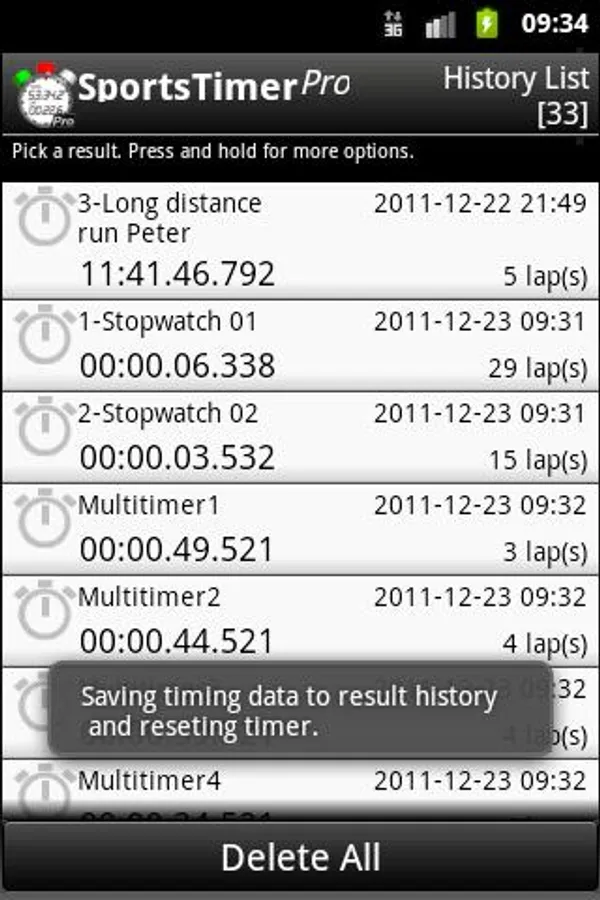 The "LapTimer" function is your single-athlete stopwatch. Record all your laps and stay informed about each lap performance. This stopwatch can be controlled in all situations--even while you're moving--because it offers optional tactile feedback and additional control through the volume buttons. At the end of the action, you can check all your lap times, save them to a history list, send the completed result to your friends or export it to your device's SD card. Export format is in the csv format and can be even opened and edited in Excel.