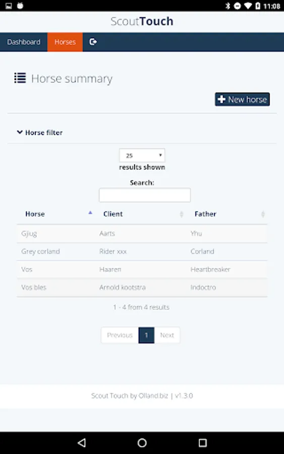 Access Portal for scout section of Horse Manager, the complete management package for the vet in your barn.